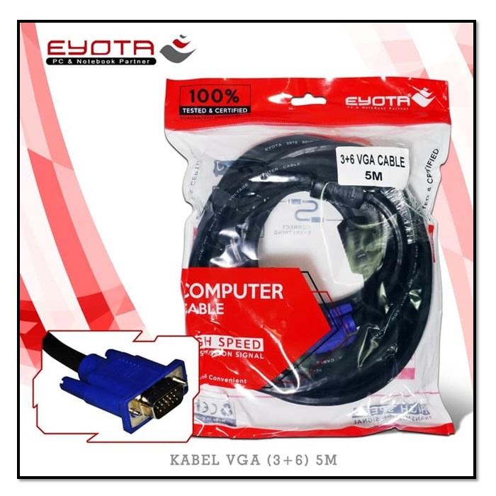 Kabel VGA 5m EYOTA Gold Plate 3 6 (Male-Male) Konektor A: VGA 15Pin Male Konektor B: VGA 15Pin Male Warna : Hitam Panjang : 5M