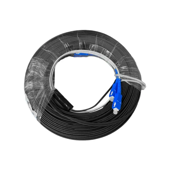 Konektor: SC / UPS-SC / UPC Inti: Serat 2 Core fiber Kabel Outdoor terhadap cuaca panas / hujan 3 Kawat Seling
