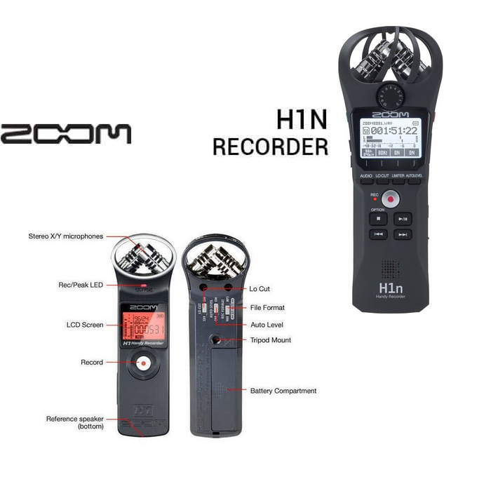 Zoom H1N Handy Recorder X/Y Stereo Mic New Layout of Integral Controls Record WAVs dan MP3s up to 24bit-96Khz Records to microSD/SDHC 3.5mm Input/Output Jack Built-In Limiter and Low-Cut Filter High-Speed USB 2.0 Connectivity Works as a USB Audio Interface Uses 2 Included AAA Batteries